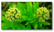 원통형이고 종자 끝에는 힌 털이 붙어있다. 식용으로 이용하는 부분은 주로 잎자루인데 길이는 40∼65cm, 굵기는 1cm정도로 녹색 또는