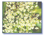 1∼3cm, 폭 0.7∼1.3cm정도된다. 꽃은 7∼9월에 복산형 화서의 희고 작은 꽃이 무수히 피며, 씨는 타원형(楕圖形)으로 가장자리의