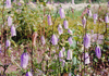 가장자리에 예리한 거치가 있다. 아래 잎은 긴엽병을 갖는 것이 많다. 종 모양의 보라색 꽃이 7~8월에 줄기 끝에서 아래로 향하는 원추화서로